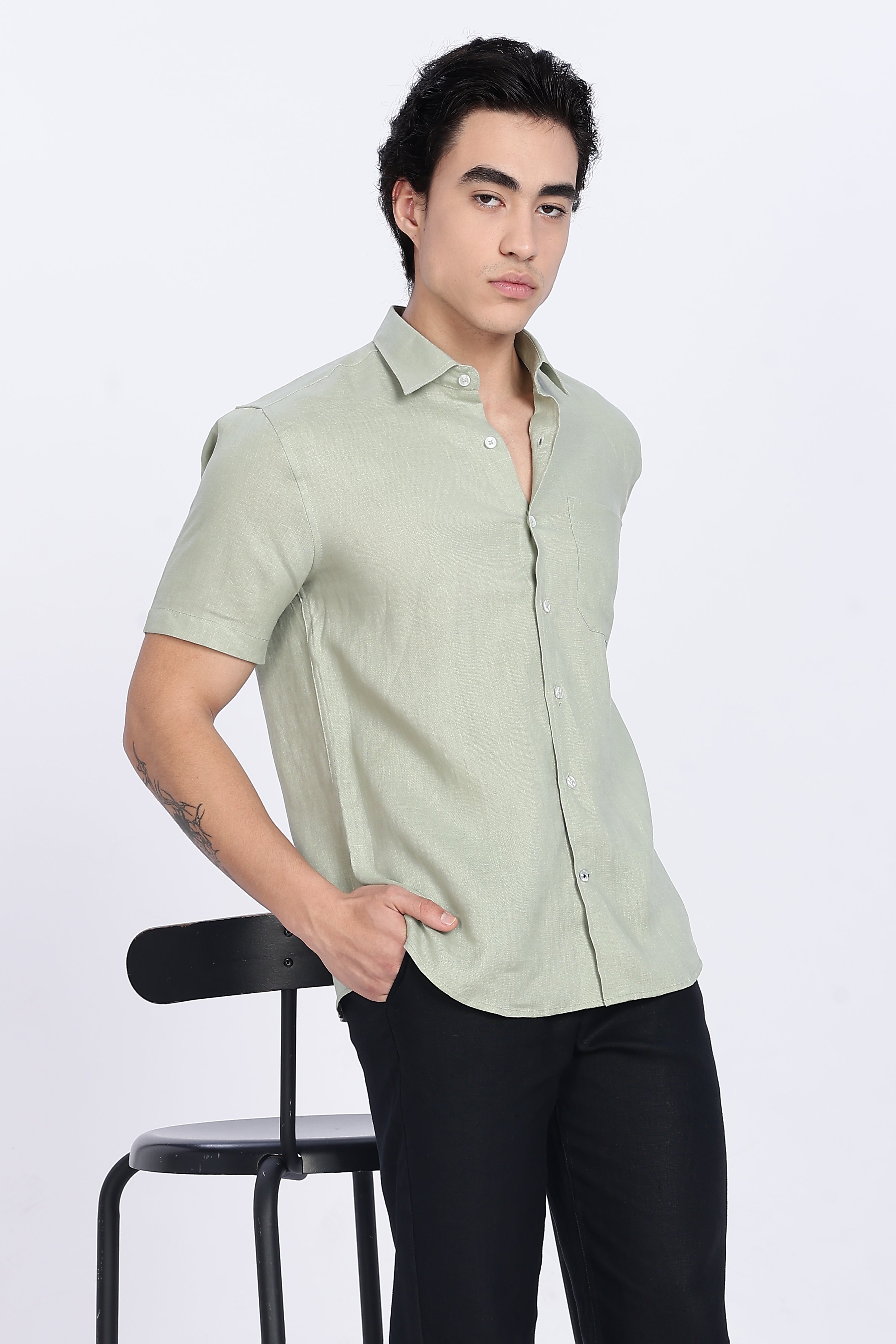 Men’s :Light Grey Half Sleeve Linen Shirt – 100% Pure Linen | Linen Culture