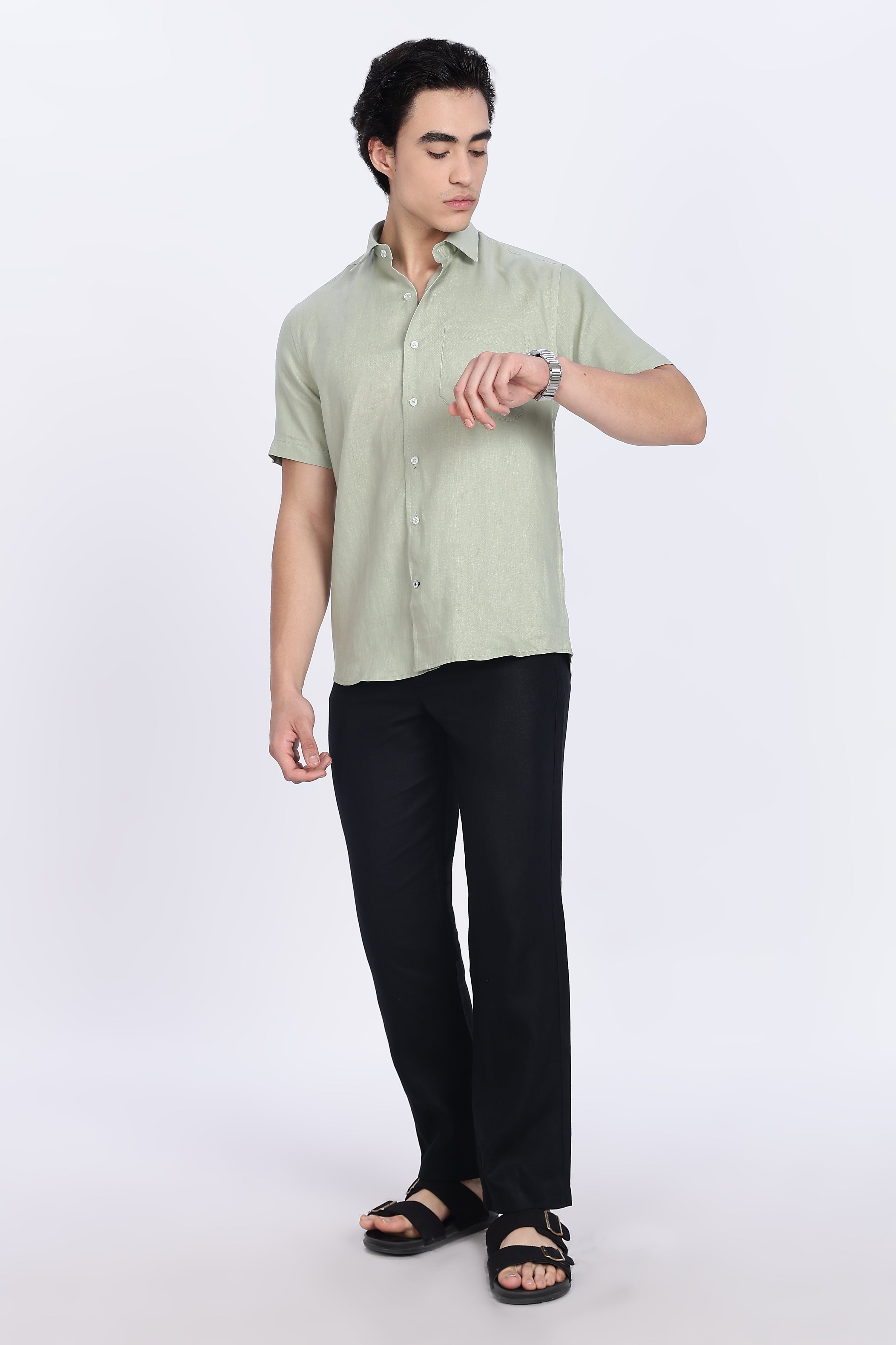 Men’s Black Half Sleeve Linen Shirt – 100% Pure Linen | Linen Culture